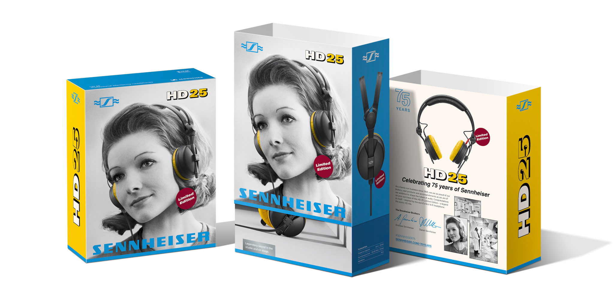 For those that get lucky an HD 25 Limited Edition model will arrive when you order a standard HD 25 model. Besides the usual black earpads, the limited edition includes additional yellow earpads, inspired by the famous colors of another icon – Sennheiser’s HD 414, the world’s first open headphones. The HD 25 Limited Edition headphones also feature a retro Sennheiser logo on the earcups and come packaged in a box with a stylish retro sleeve.
