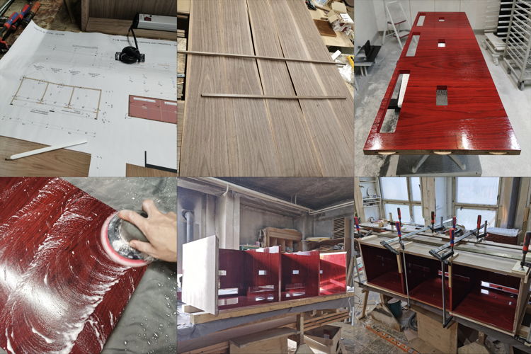 “I wouldn’t build something unless it could be compared to a professional product. I’m a bit of a perfectionist,” Hakiel admitted. Inside the cabinet is a red polished lacquer that Hakiel polished for weeks before it shined in the way he envisioned. “I learned a lot. At times it was even frustrating. The process showed me how important it is to understand how far you can go. I know what is theoretically possible, but the application of this cabinet helped me understand how things are really done on-site to achieve a better product,” Hakiel said.