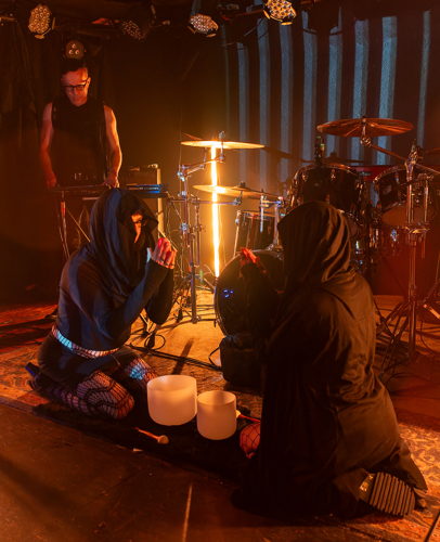 Timo elaborates on their avant-garde technique, highlighting the transformative visual strategies they employ: “Our innovation with video projections extends beyond mere backdrops; we use them as the primary light source, directly illuminating the band to produce captivating visual effects. This approach, akin to projection mapping, not only immerses the performers in complex patterns but also creates moments where they appear almost transparent, blurring the lines between the physical and the visual realms, adding an unparalleled depth to our shows.” Such creative fusion not only captivates the audience but also elevates the performance to an immersive artistic experience.