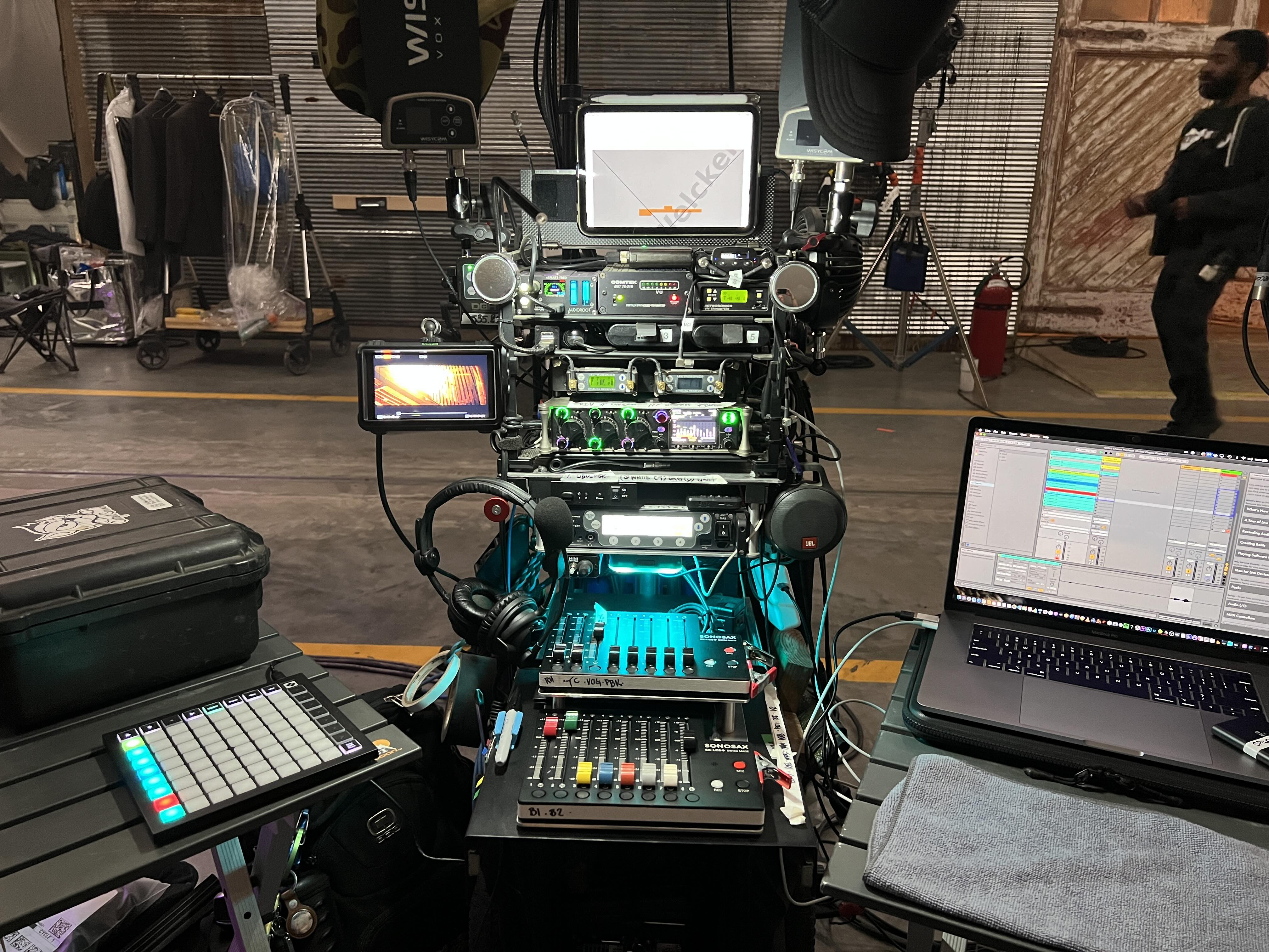 “For the twin work with Michael, we would prerecord audio from the previous take with the body double and then map it to cues of the footage with ADR beeps. Having the flexibility to route the audio to Ableton Live and then chop things up and play it back through the recorders and out of speakers gave us a system that could work quickly and preserve the energy of the take.”