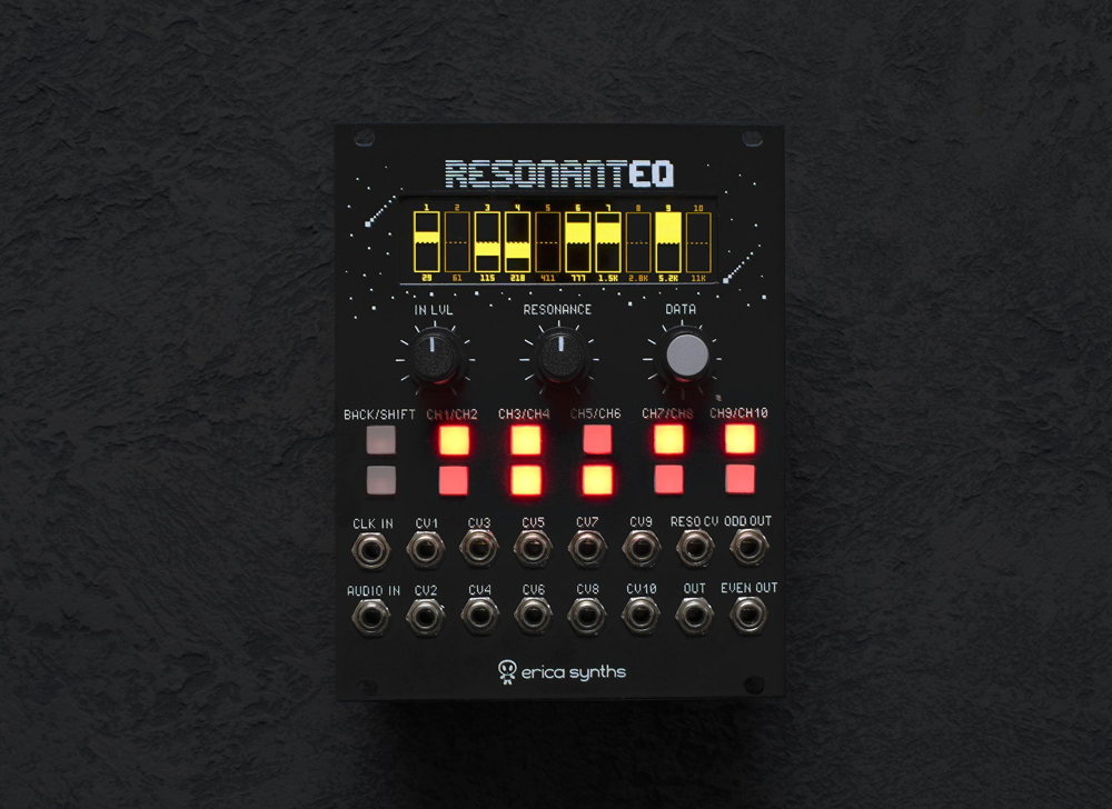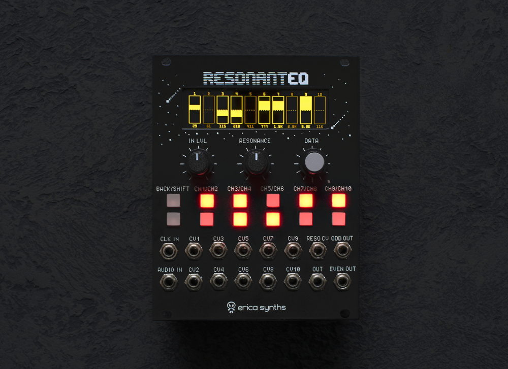 Erica Synths expands its Graphic series of Eurorack modules with a unique sound shaping module: Graphic Resonant Equalizer. This is a 10-band resonant equalizer with a fully-analogue signal path and digital control over individual band levels.