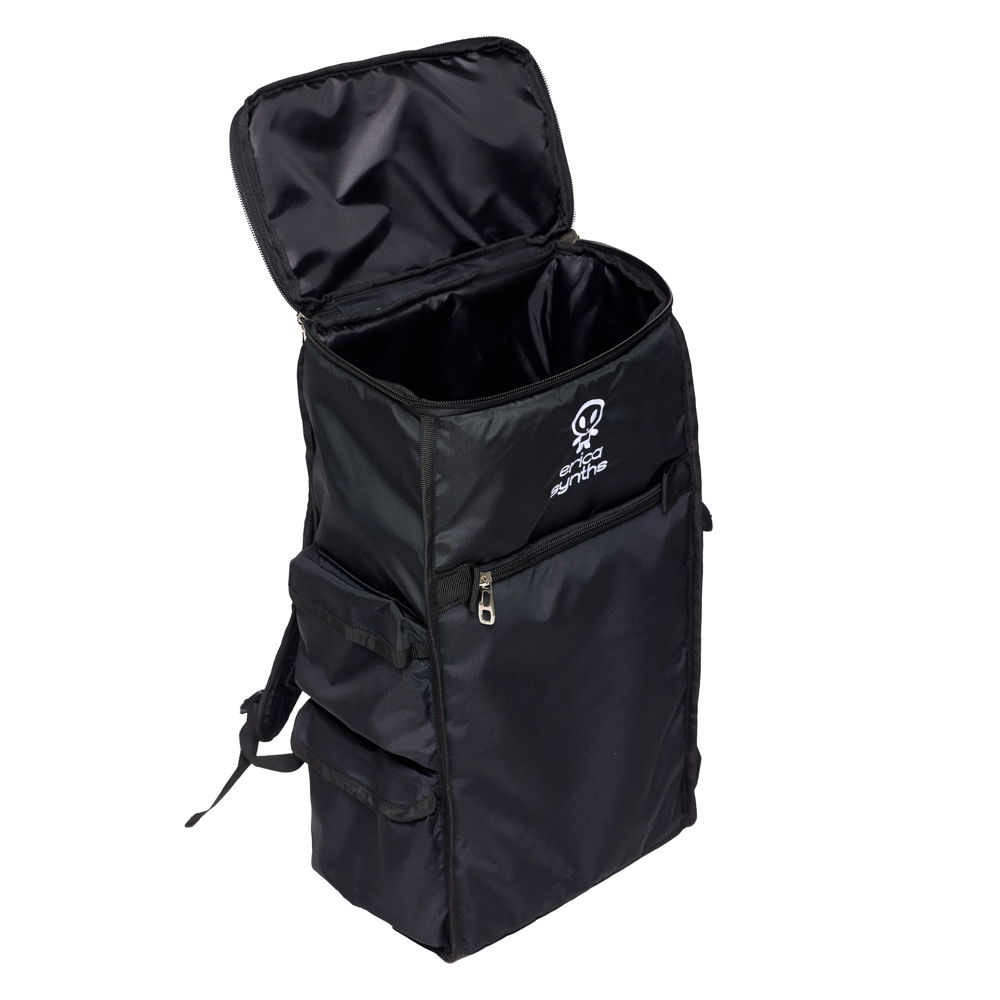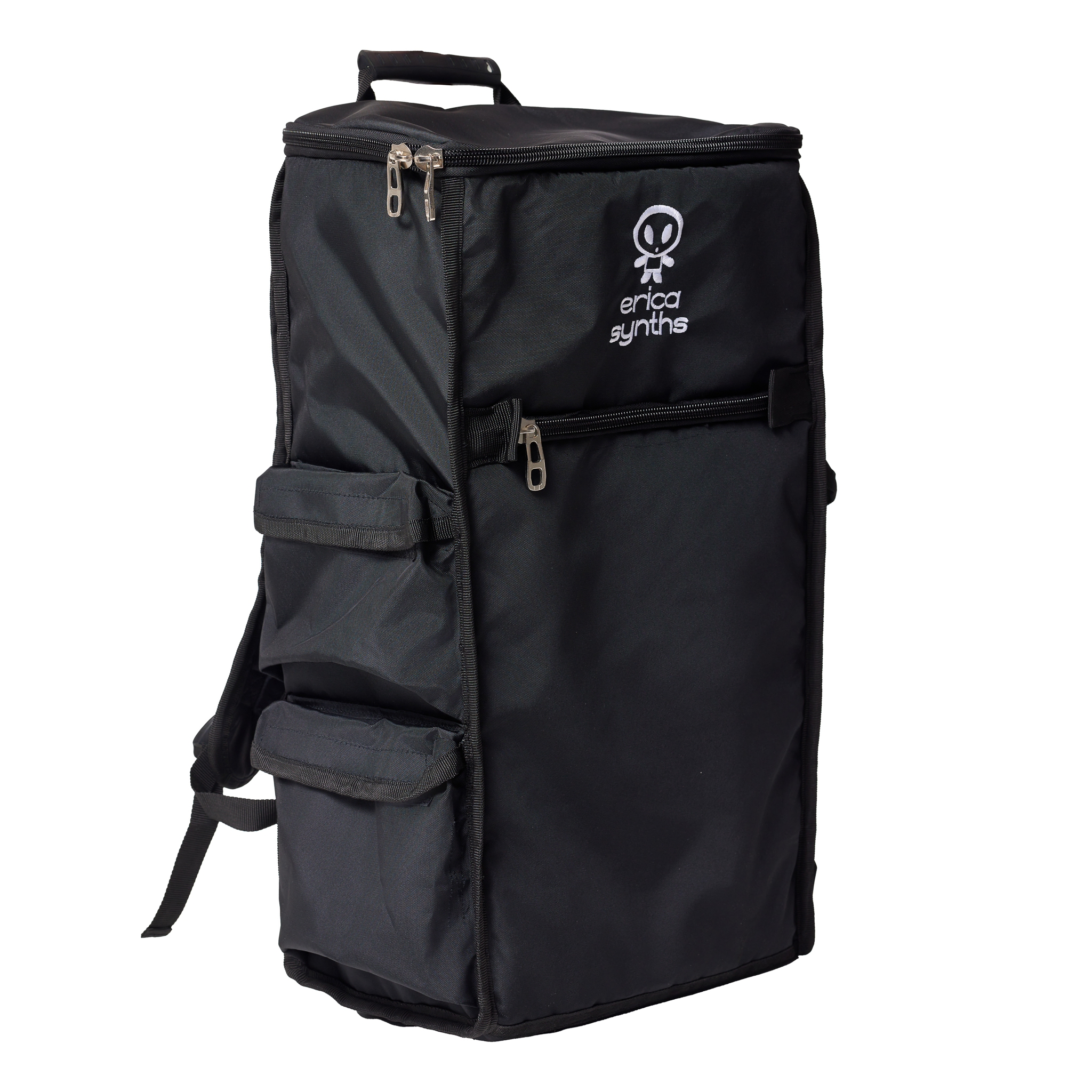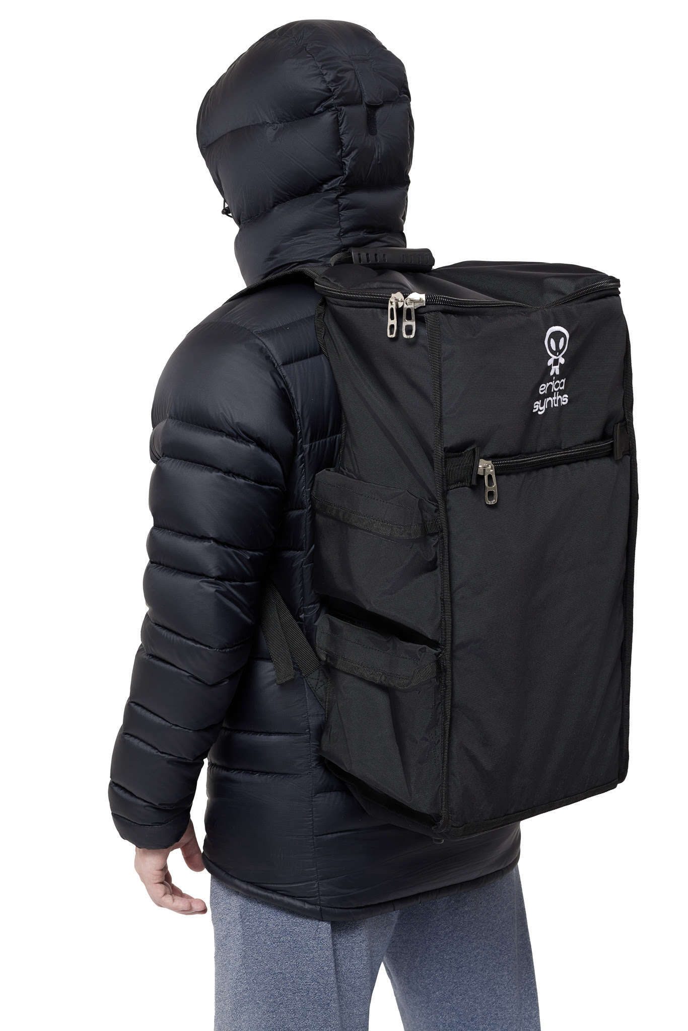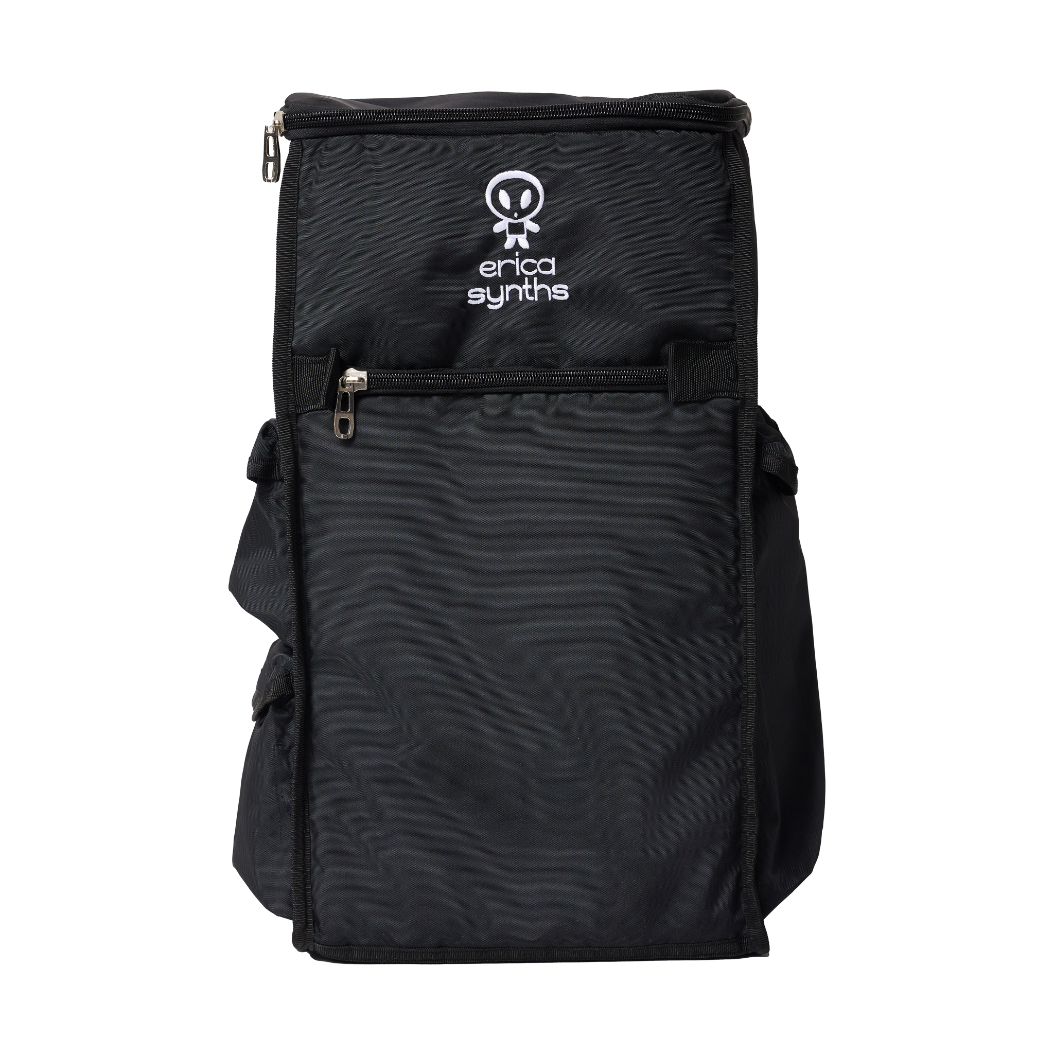Erica Synths backpack is a must-have accessory for the 2x104HP aluminum and carbon travel cases. Featuring a roomy main compartment with an elastic band for securing a laptop in place, spacious side pockets, and a separate zipped compartment on the back, there's plenty of room for all your patch cables and other accessories (Dimensions: 58 x 18 x 32 cm).