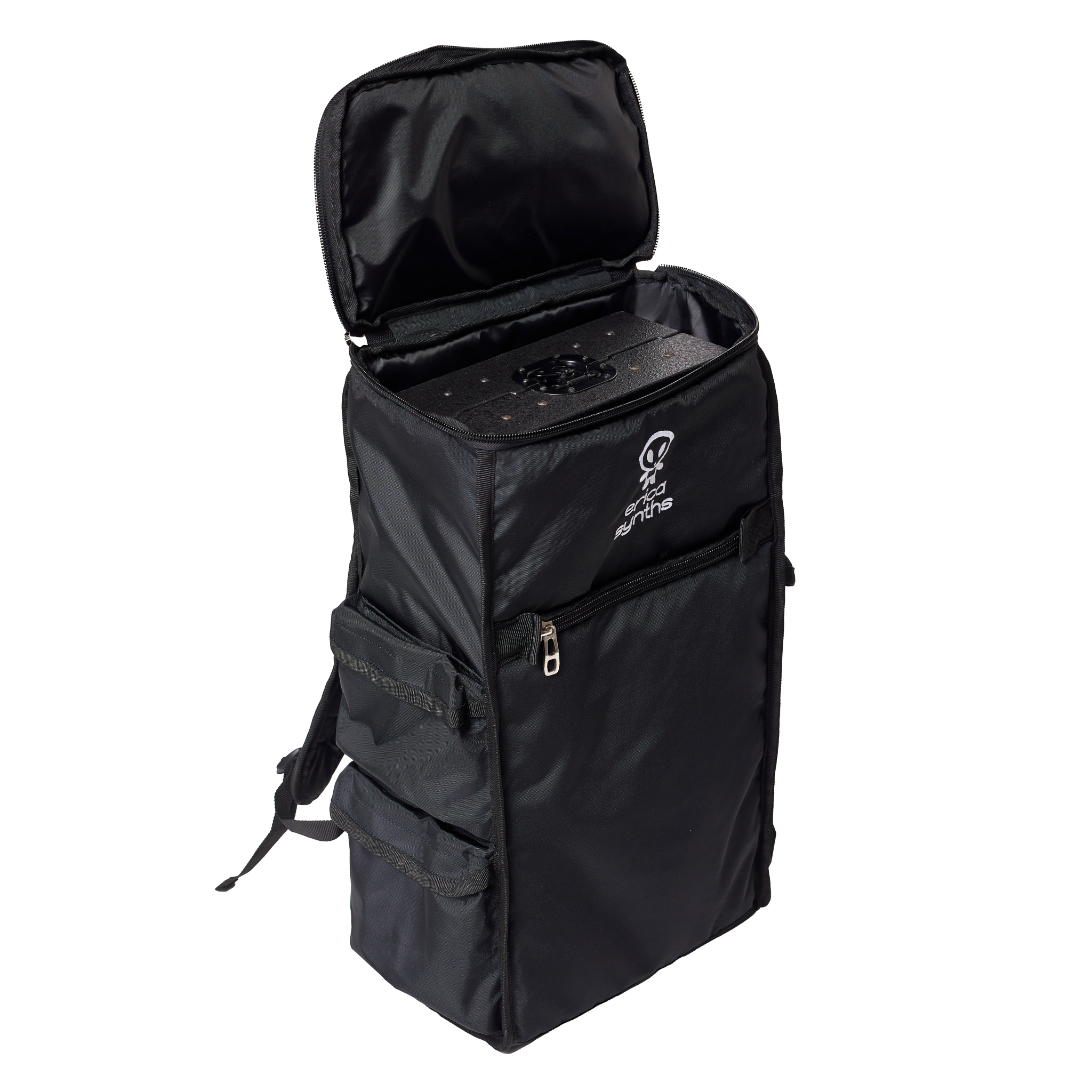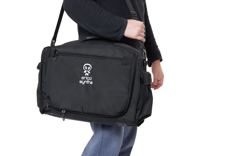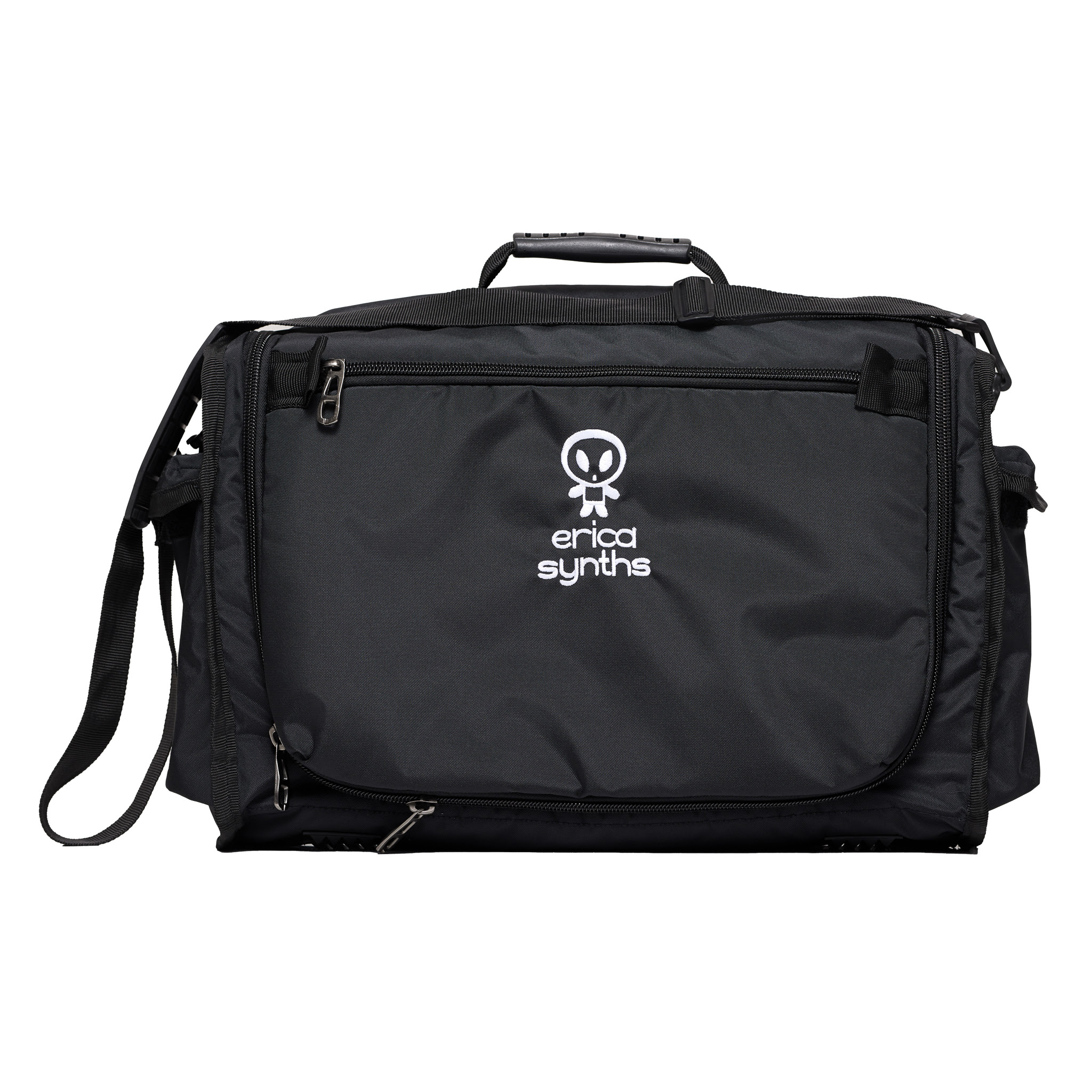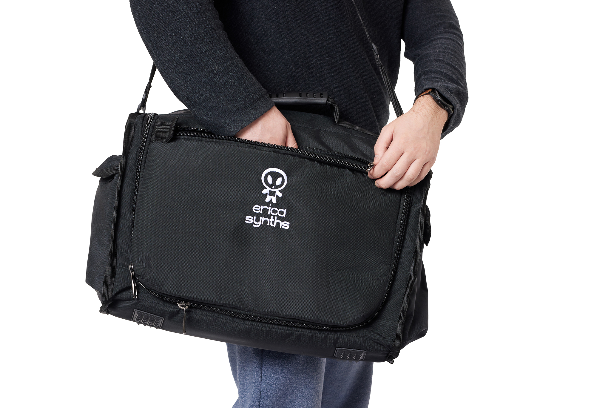 Erica Synths backpack is a must-have accessory for the 2x104HP aluminum and carbon travel cases. Featuring a roomy main compartment with an elastic band for securing a laptop in place, spacious side pockets, and a separate zipped compartment on the back, there's plenty of room for all your patch cables and other accessories (Dimensions: 58 x 18 x 32 cm).