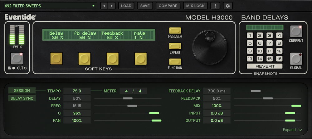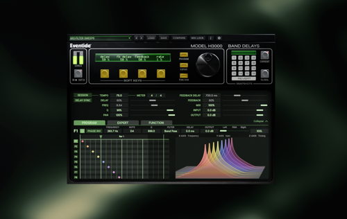 The H3000 Band Delays Mk II features eight bands of filtered delays and contains over 100 carefully created presets including sweeping comb filters, auto-panning delays and more, all derived from the original H3000 Harmonizer studio processor. Users can flexibly access a range of delays, filtering, stereo-widening, and dynamic rhythmic effects directly from the DAW, suitable for any mixing or sound design application.