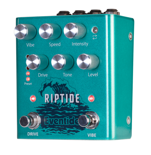 Little Ferry, NJ, October 11, 2023 – Eventide Audio has introduced its new Riptide pedal, the result of extensive research into the iconic Shin-ei Uni-Vibe® and legendary overdrives. The Uni-Vibe delivered swirling vibey waves of lush modulation recognizable on tracks by Jimi Hendrix, David Gilmour and Robin Trower. Overdrive is the classic distortion technique originally discovered by guitarists cranking their amps to the max and driving the vacuum tubes into heavy saturation. These two classic effects are offered with the Riptide pedal as “Vibe” and “Drive.”
