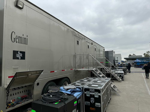 Arriving a few days before showtime in Gemini, HEAR principals John Harris, Jody Elff, and Rob Macomber partnered with Orchestra mixer Tommy Vicari and Production mixer Paul Wittman. For a show of this size and compliment, Gemini’s two identical control rooms -- unique to Gemini — served as crucial headquarters for the two complimentary tracts of the show’s audio production. “The expectations when we are brought onto a project like this are superior results and high production values within a short time frame,” says Macomber. “Gemini is designed specifically with these high-level productions in mind and because it is two networked control rooms within the same vehicle, we can offer a level of seamless integration and control to the audio of these events that is frankly, unprecedented.”