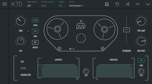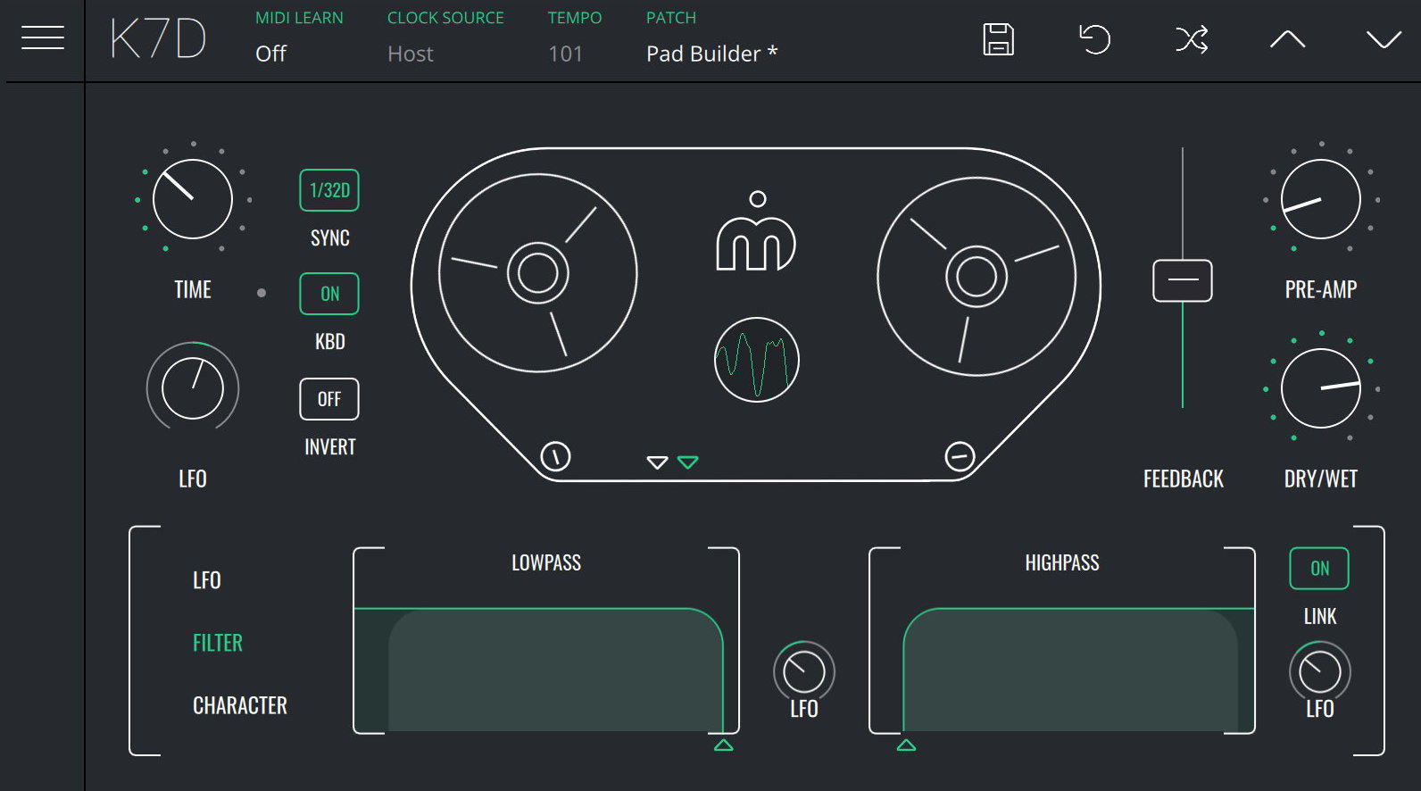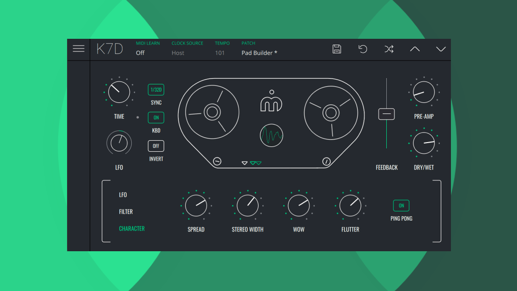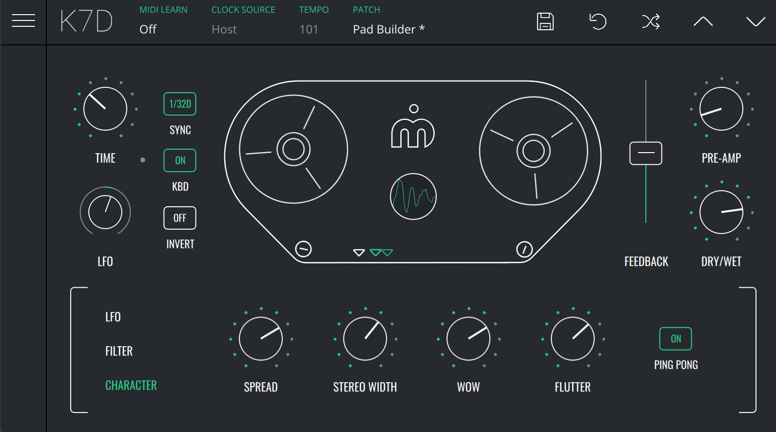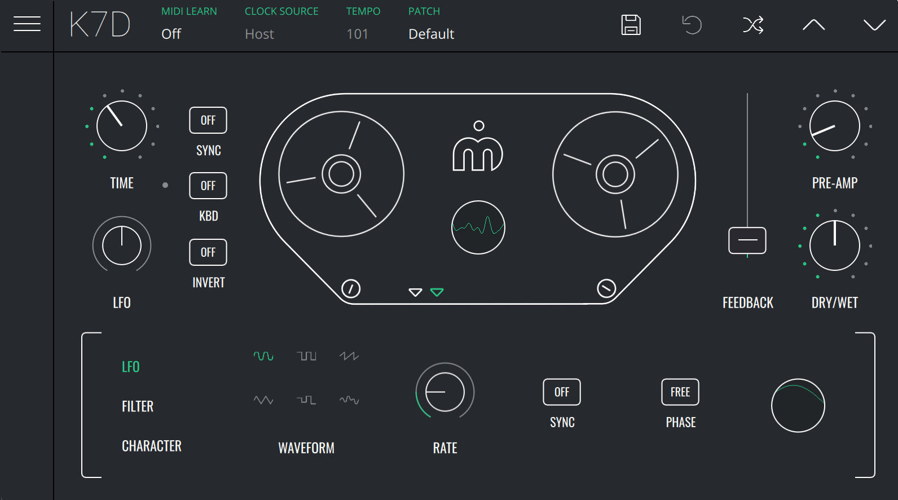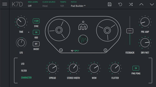 K7D, a tape delay plugin, emulates the sound and functionality of classic delay hardware. It features a modern interface that allows precise control and creative experimentation in sound production. With capabilities ranging from complex modulations in ambient tracks to enhancing vocal textures, K7D provides an intuitive solution for adding depth to a project.