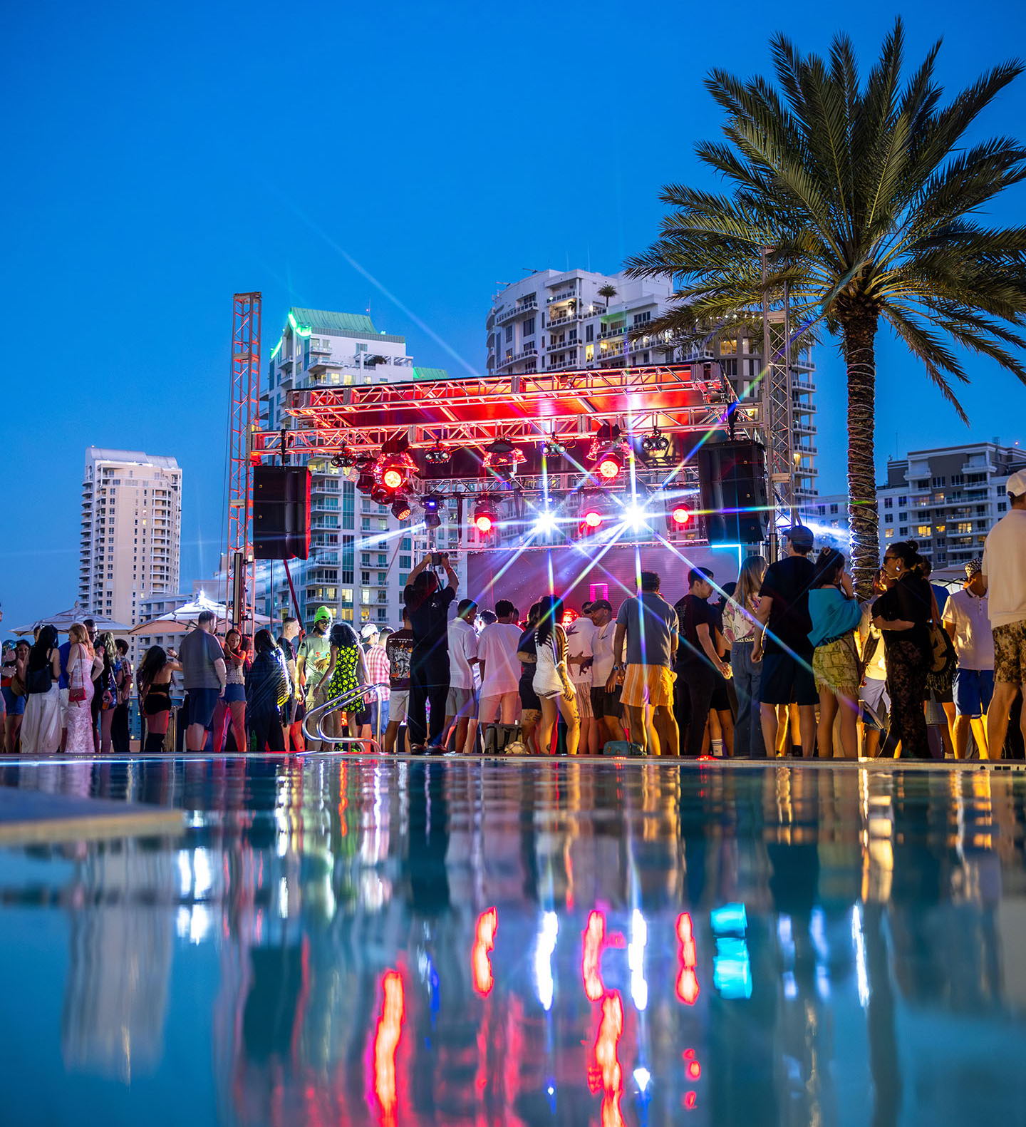 The Beatport Live and WMC pool party series featured an immersive sound system paired with L-Acoustics DJ, enabling artists to spatially mix their sets (Photo credit: Vivi Cuberos / @vivicphotostudio)