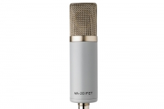The MA-201fet is a large diaphragm, phantom-powered, solid-state condenser microphone with a fixed cardioid pattern. With its roots in a lineage of microphone designs by David Royer, the MA-201fet imparts warm, full-bodied reproductions of both vocals and instruments, without shrillness and high frequency distortion artifacts. This makes it suitable for a variety of applications. In addition to drum overheads and drum rooms, the MA-201fet is also well suited for applications including high SPL sources such as kick drums and bass guitar amps, electric guitar, piano, and a range of acoustic instruments.