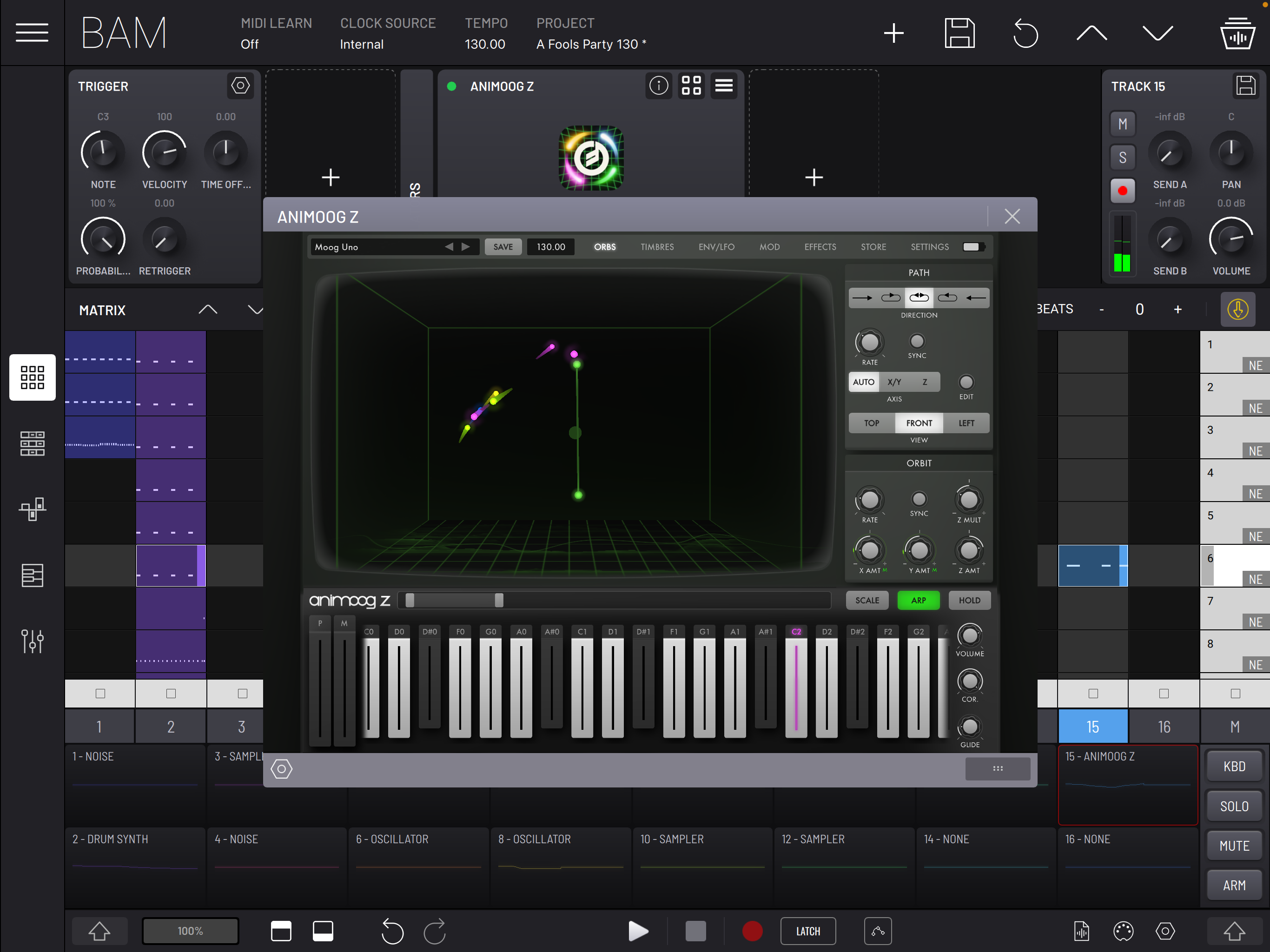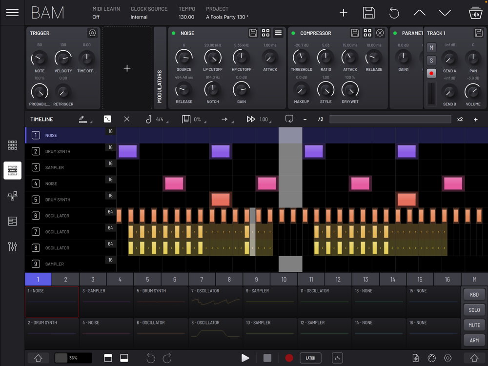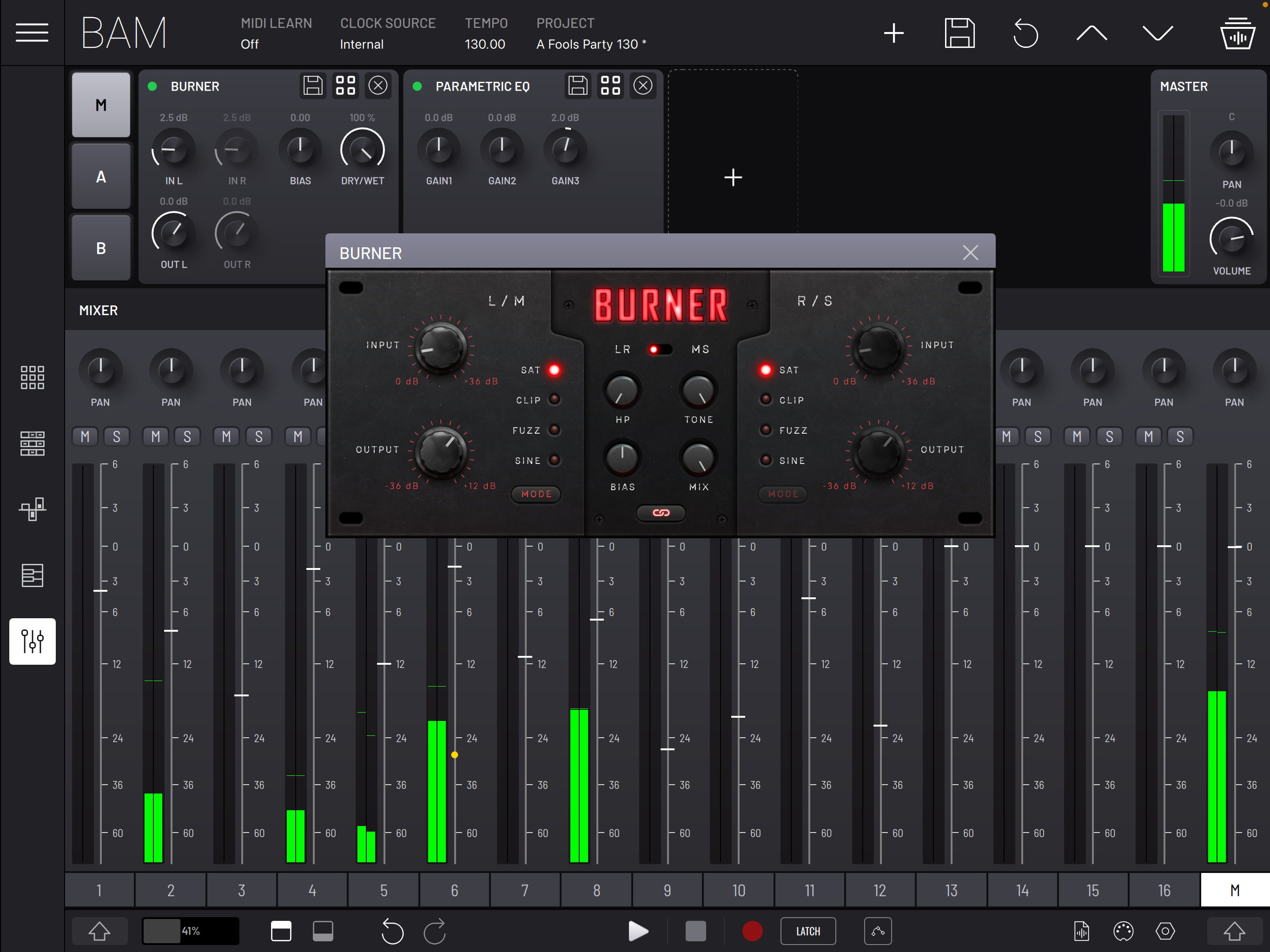 BAM's scalable clip grid consists of 16 clips per scene and up to 1024 scenes - samples and sound sources can be added by simply dragging and dropping. Equally useful for studio and live performance, scenes can be edited or duplicated in real time. A powerful mixer and FX section enables muting and panning of tracks, reverb send and return, delay, compression and so much more. An intuitive interface, combined with BAM's powerful automation capabilities allow users to automate almost any parameter on a step basis, capture parameter changes while recording or tweaking them during a live performance.
