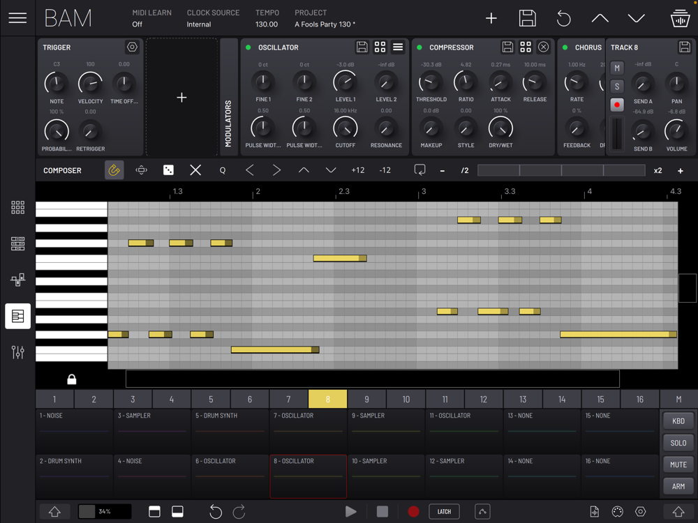 With an incredibly intuitive UI, powerful sequencing, sampling and automation capabilities, BAM is able to help producers cultivate basic beats or synth lines into fully formed, electronic music compositions. It's array of features, which include five complex synthesis engines (oscillator, sampler, drum synth and noise); seven analog modelled drum machine emulations parts per track, full LFO and EG modulation; a sample library with over 1,000 drum and percussive samples; an integrated mixer with volume, pan, solo and mute switches and a powerful clip-based step matrix step sequencer, provides users with an unparalleled set of production options - all of which are easily accessible and scalable.