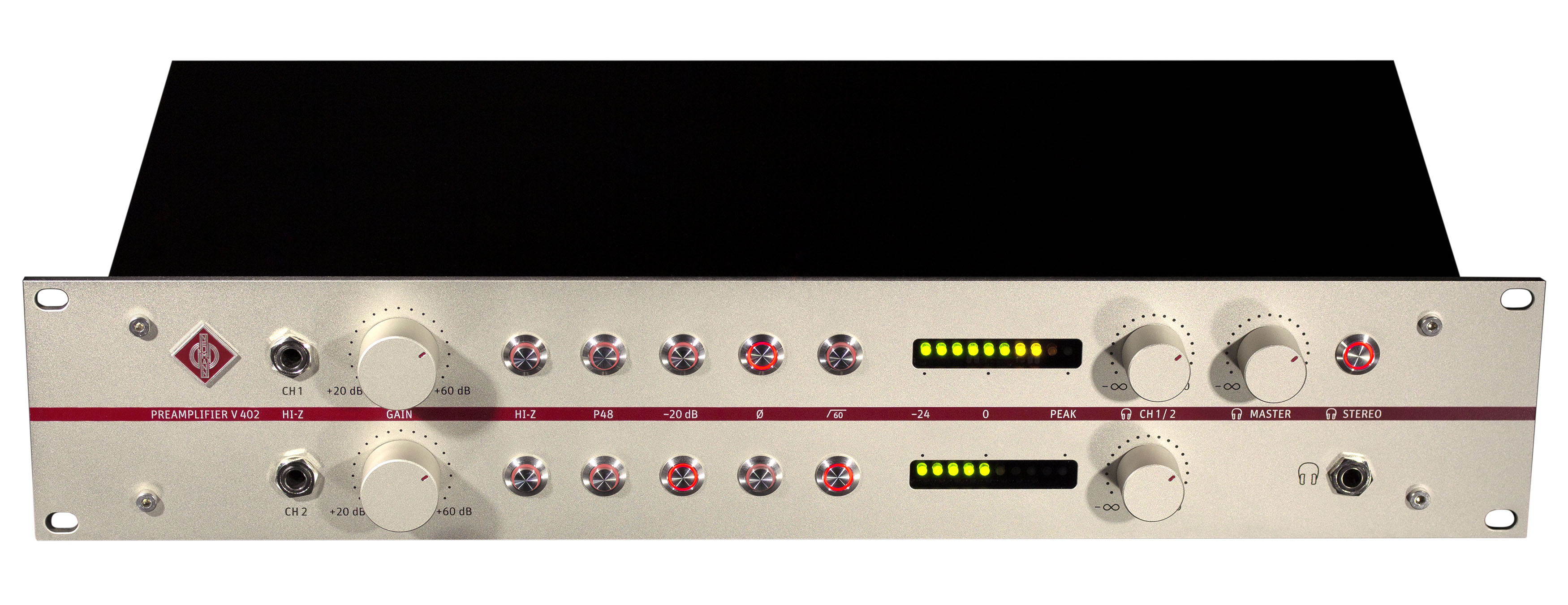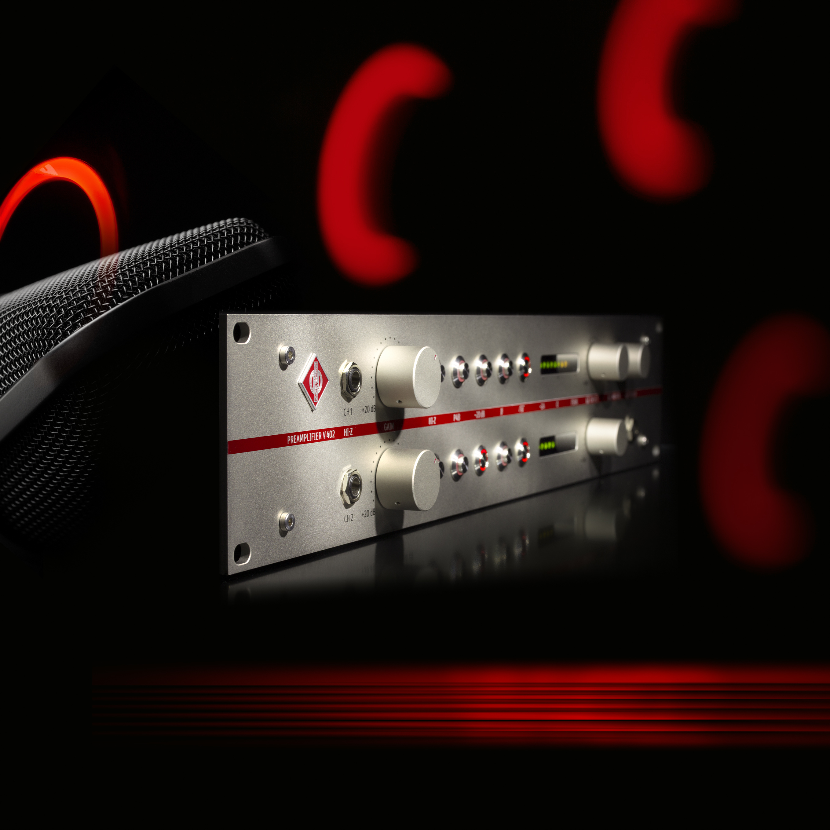 “All Neumann microphones, classics as well as current models, have highly unique sound characteristics”, explains Ralf Oehl, the Berlin company's new CEO. “Finding a preamplifier with the matching uncompromised sound fidelity wasn't always easy – until now! The V 402 provides the ideal signal path for all Neumann microphones because it is free from any coloration whatsoever. No artificial additives could make the sound of a Neumann U 47 or U 87 more desirable than it already is. Perfection cannot be perfected!”