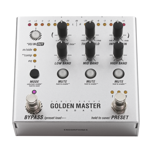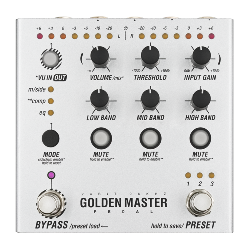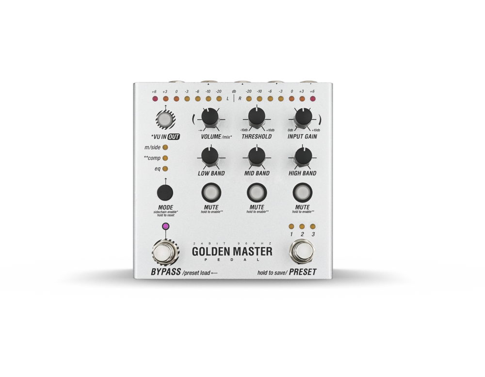 With 32-bit internal processing, multi-band compression and EQ, Golden Master Pedal enriches stereo mixes and imparts life to individual elements