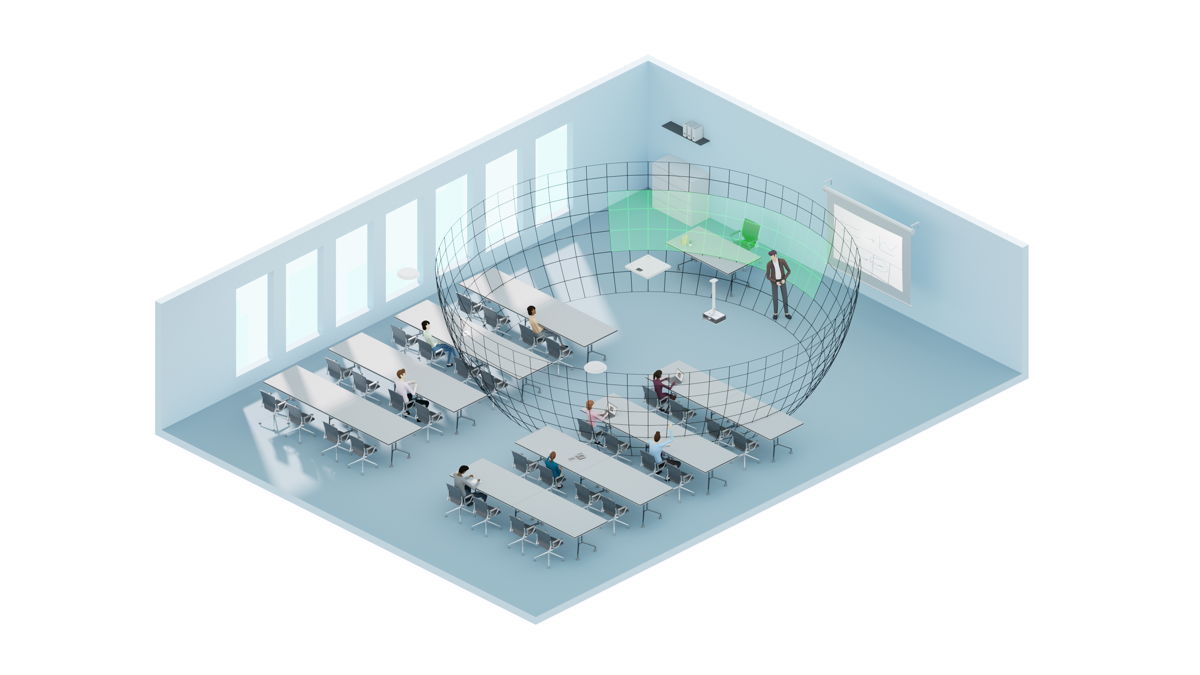 Combining the convenience of Sennheiser’s ceiling mic array with next-level voice amplification