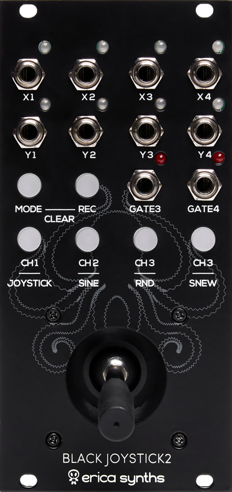 Riga, Latvia, February 11, 2021 — Erica Synths announces its new Black Joystick2 Eurorack module, an eight channel, multi-functional CV and sound source. Since Black Joystick2 is a joystick, a movement recorder, a distinct LFO and a drone/noise oscillator all in one, it offers many possibilities and allows users to develop unconventional modulation patterns instantly.